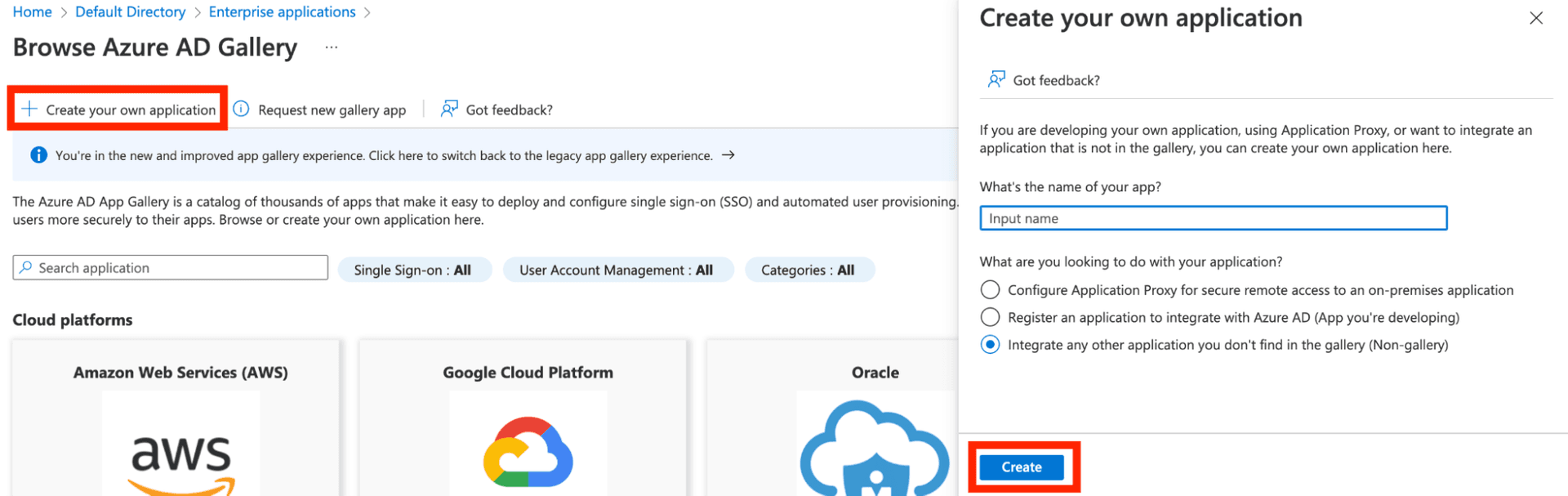 - Click +Create your own application, define the app name, and click Create: