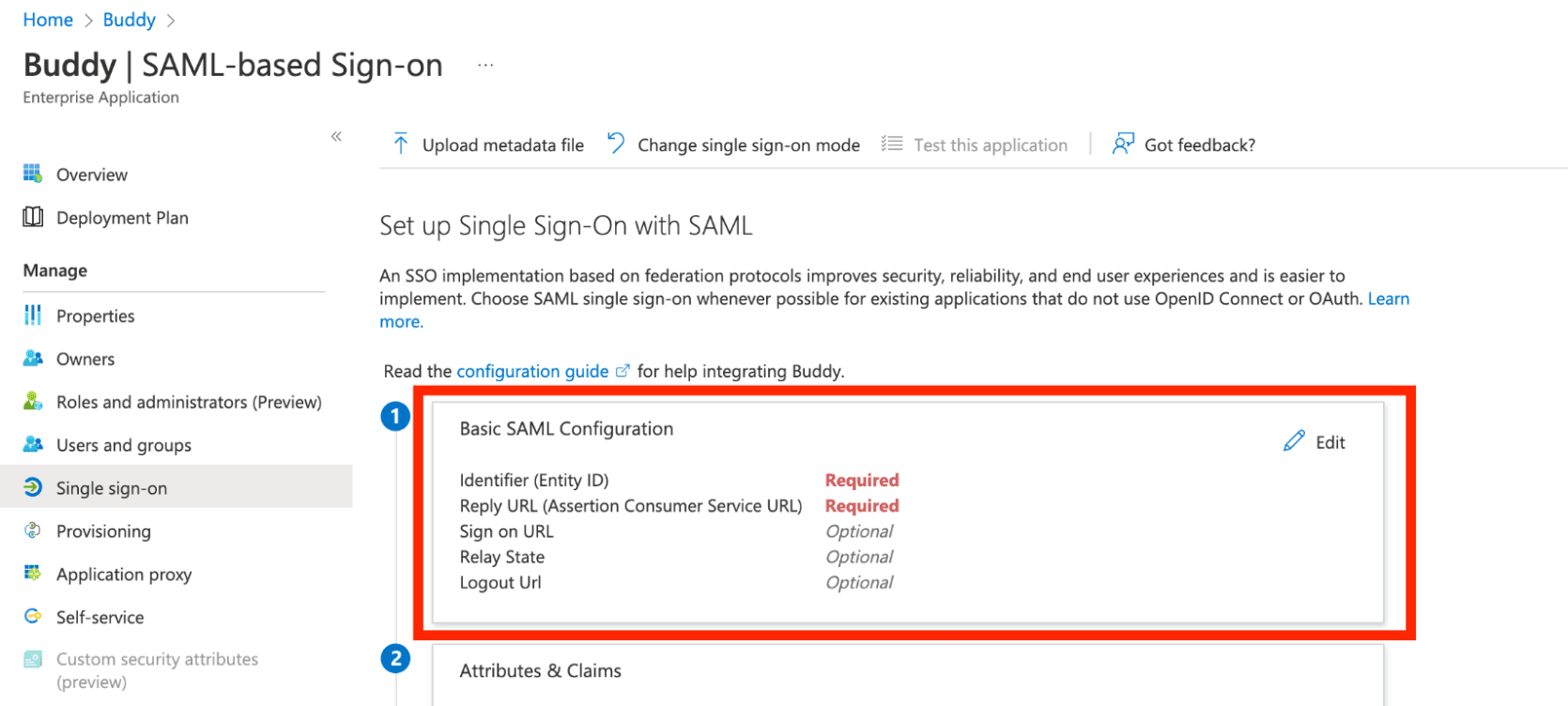 1. In Azure, go to Single sign-on → Attributes & Claims