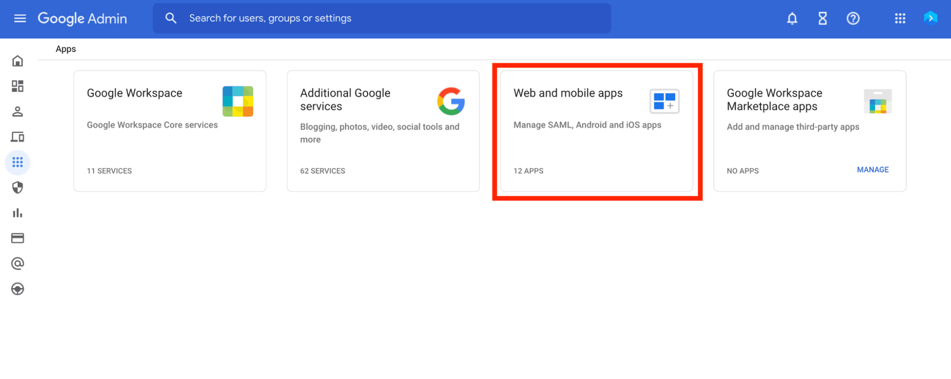 - Go to Apps → Web and mobile apps: