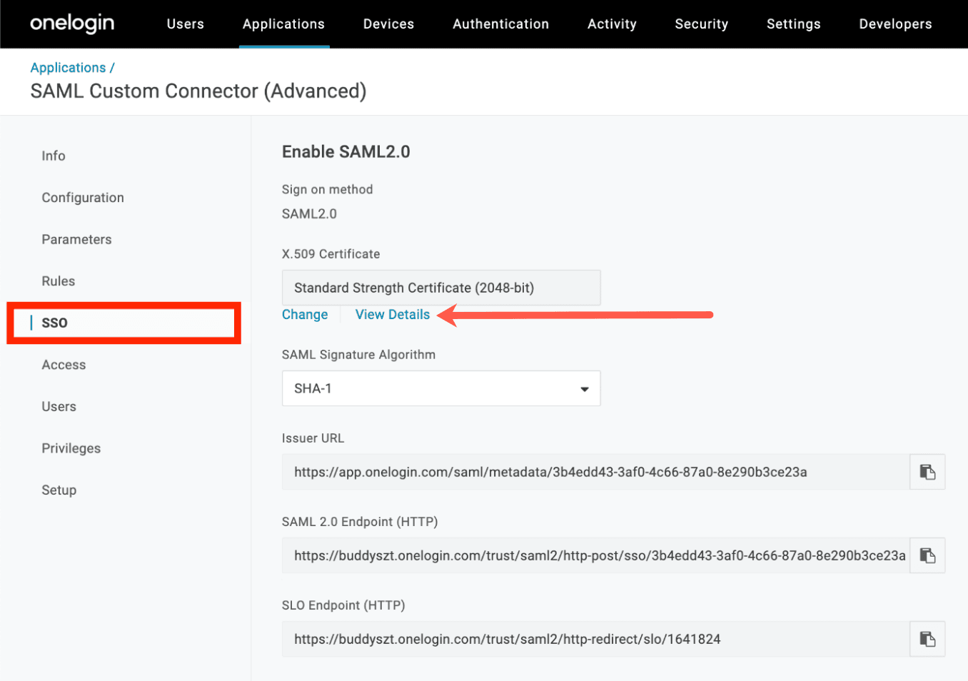 Return to the Buddy SSO settings tab and provide the information you copied from the OneLogin panel: