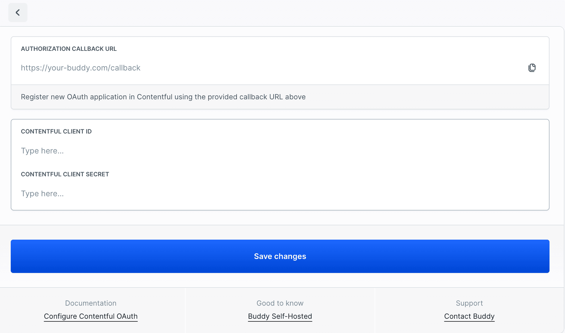 Integrating Buddy self-hosted with Contentful allows you to use the Contentful CLI to manage your content and spaces.