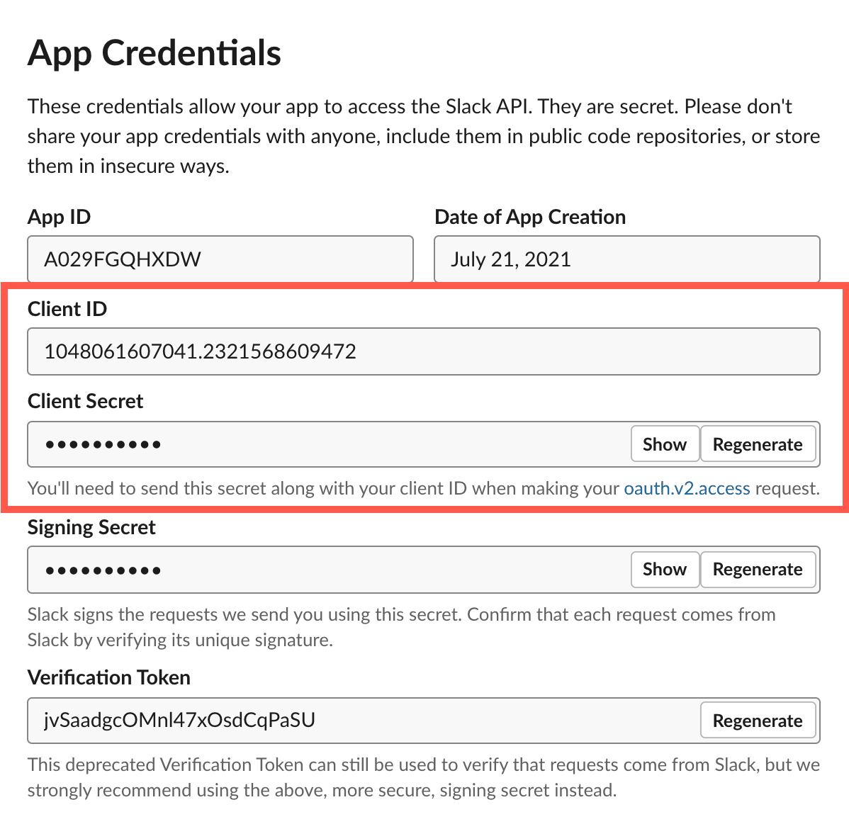 - Scroll down to the App Credentials section, copy the Client ID and Client Secret, and paste them into the corresponding fields in Buddy.