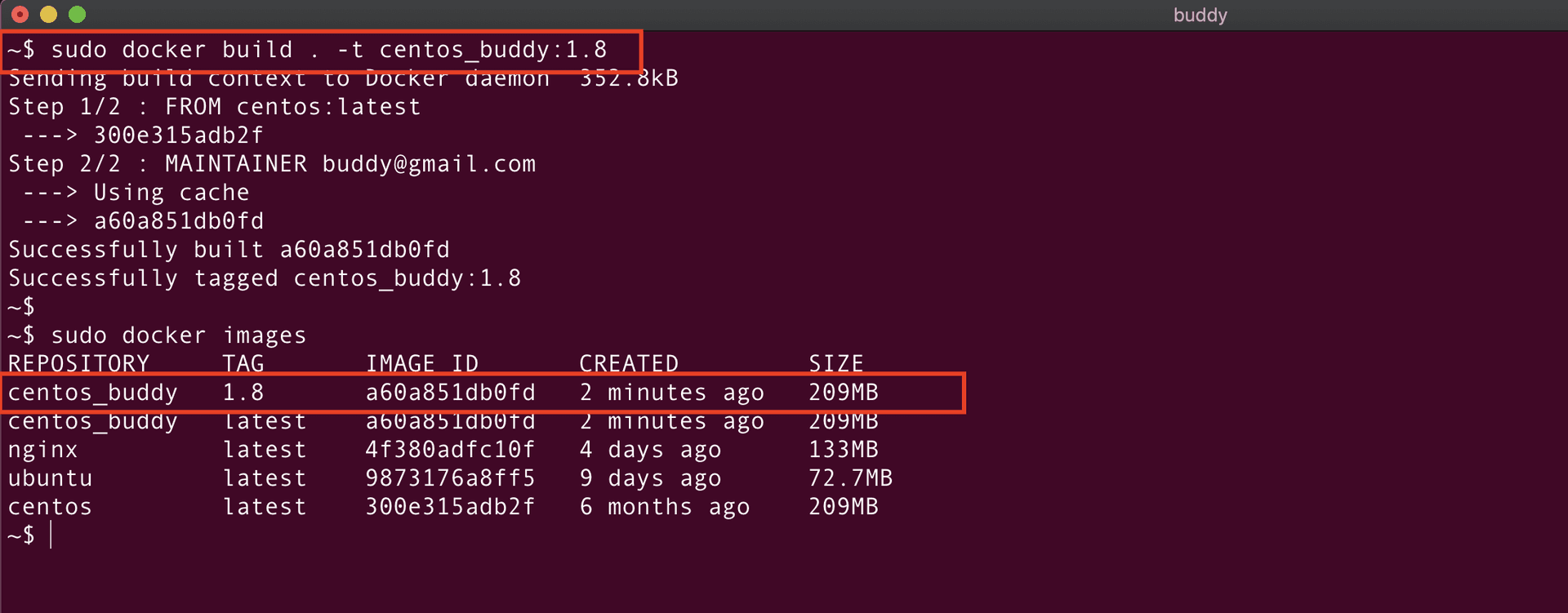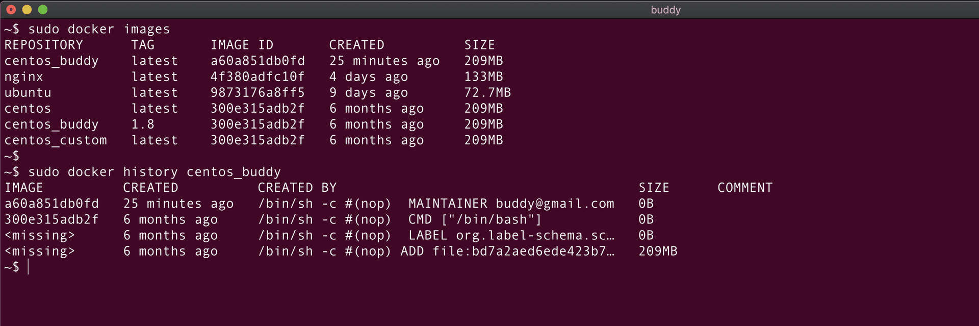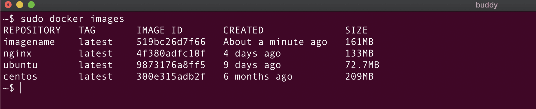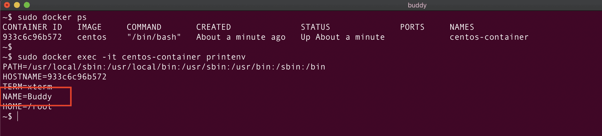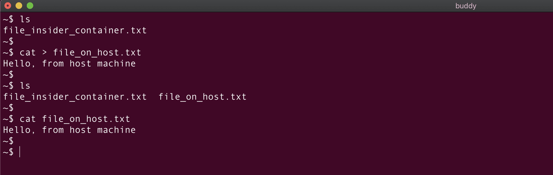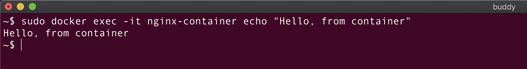 If we end the terminal session by closing the terminal tab or by pressing CMD+C/CTRL + C, the container should die automatically. Running docker ps will confirm this is what indeed happened: