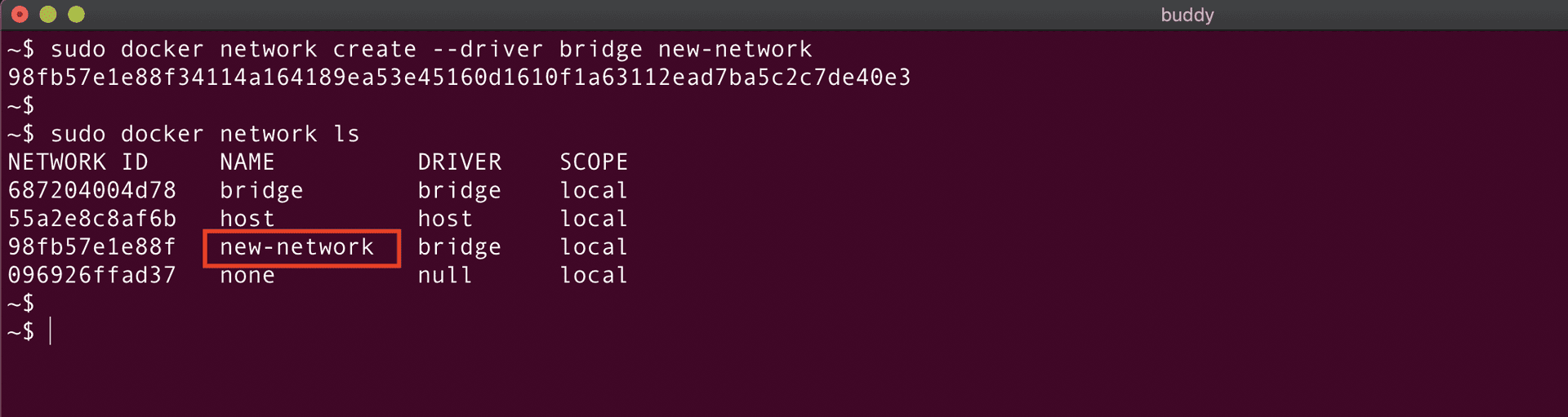 bashdocker network create --driver <driver-name> <bridge-name>$