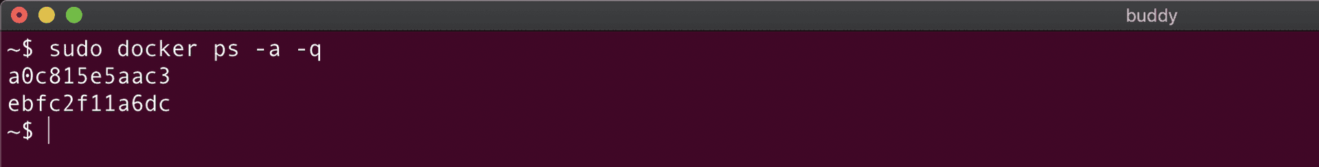 Adding the --quiet parameter modifies the docker ps output and displays only the IDs of running containers: