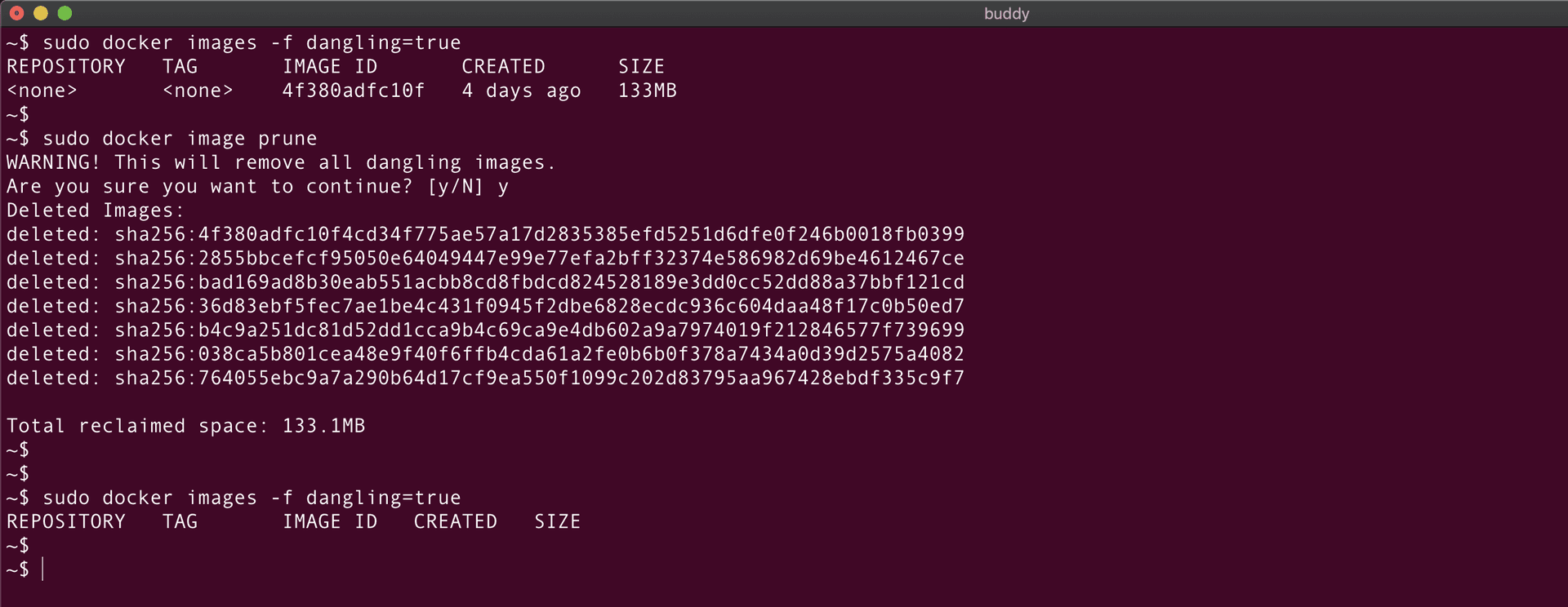 The final command on the list is docker system prune, which is essential to keep up high performance of Docker on your machine: